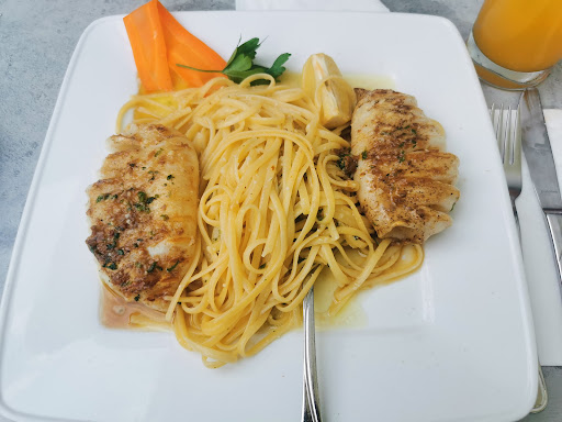 Read moreEigentlich ist es in der Summe irgendwie ok, aber halt auch nicht wirklich. Sicherlich sitzt man gut, vor allem auf der Terrasse. Bedienung ist auch ok, allerdings hat Sie meine Bestellung vergurgt. Wo wir beim Thema wären. Gemischter Salat mit Putenstreifen. Wie gemischt darf man diesen Salat erwarten. Reichen da 2-3 Sorten gerupfte Blattsalate aus der Selgros Packung aus.Wenn die einzigen etwas festeren Bestandteile, etwas Möhrengeschnetzeltes und EINE Ziertomate mit VIER Gurkenscheiben. Putenstreifen waren ok. In der Summe aber ist das Gericht eine Zumutung. Ich kauf selber bei Selgros ein und rechnen kann ich auch. EUR 14:40 für diesen Teller ist a, völlig überteuert und b, geschmacklich mäßiger Durchschnitt. Noch keine Abzocke,...