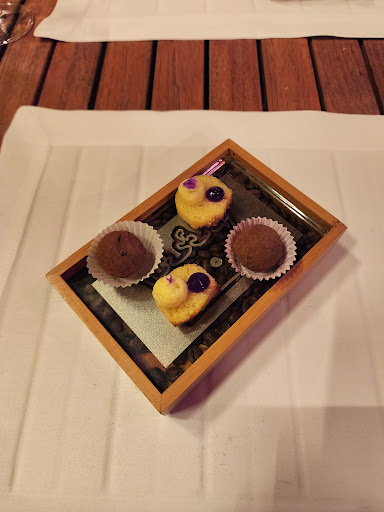 Having dined at numerous Michelin starred restaurants around the world, my spouse and I agree that this place is not worthy of a Michelin star. The kitchen is severely understaffed (or are they? Because we saw 3 of them taking a lengthy smoke break outside.) We arrived at 6pm when the restaurant just opened, everything was served at a good pace while we were the only customers. But then we had to wait 20 minutes for dessert and then another 30 mins for the small “fine patisserie” (look at pictures, cannot believe we had to wait that long for it, it’s obvious they forgot about us), and then another 25 minutes waiting for their one and only payment terminal to work, which ended up with us driving to the nearest ATM to take out cash and returning to pay them. The server was apologetic but not the restaurant owners. We got no apology or a free gift or even any words of acknowledgement for the inconvenience.