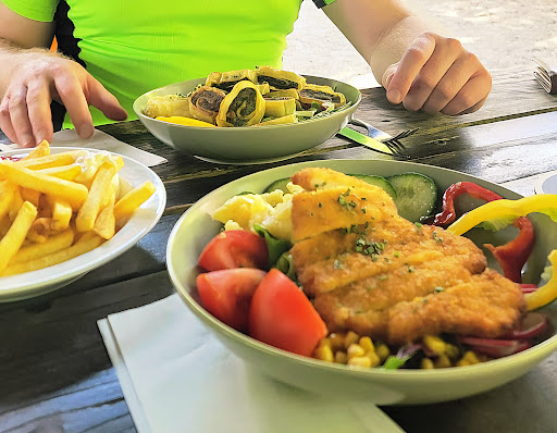 Parking and bathroom facilities are also quite adequate, safe and clean. So, what's not to like? Well, prices are a bit on the higher side - and if you come with a large family or group costs can add up quickly. I paid EUR 15.- for a "Schnitzel mit Pommes" and a "Spezi" drink. For me, that price was fine - and well worth it. I would surely consider...