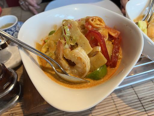 Authentisch thailändisches Restaurant. Auf den ersten Blick wirkt das Restaurant recht unscheinbar, wir sind nur durch eine Empfehlung auf das Restaurant gestoßen. Die Einrichtung ist bodenständig und schlicht. Was dieses Restaurant für mich ausmacht, sind die Speisen. Ich habe bisher nirgends so authentisch thailändisch gegessen wie hier. Wer den typischen Asiaten vermutet, ist hier falsch. Da ich bereits in Thailand war, kann ich sagen, hier wird gekocht wie in Thailand. Das Thai-Curry ist scharf, das Gemüse frisch und das Fleisch qualitativ hochwertig.