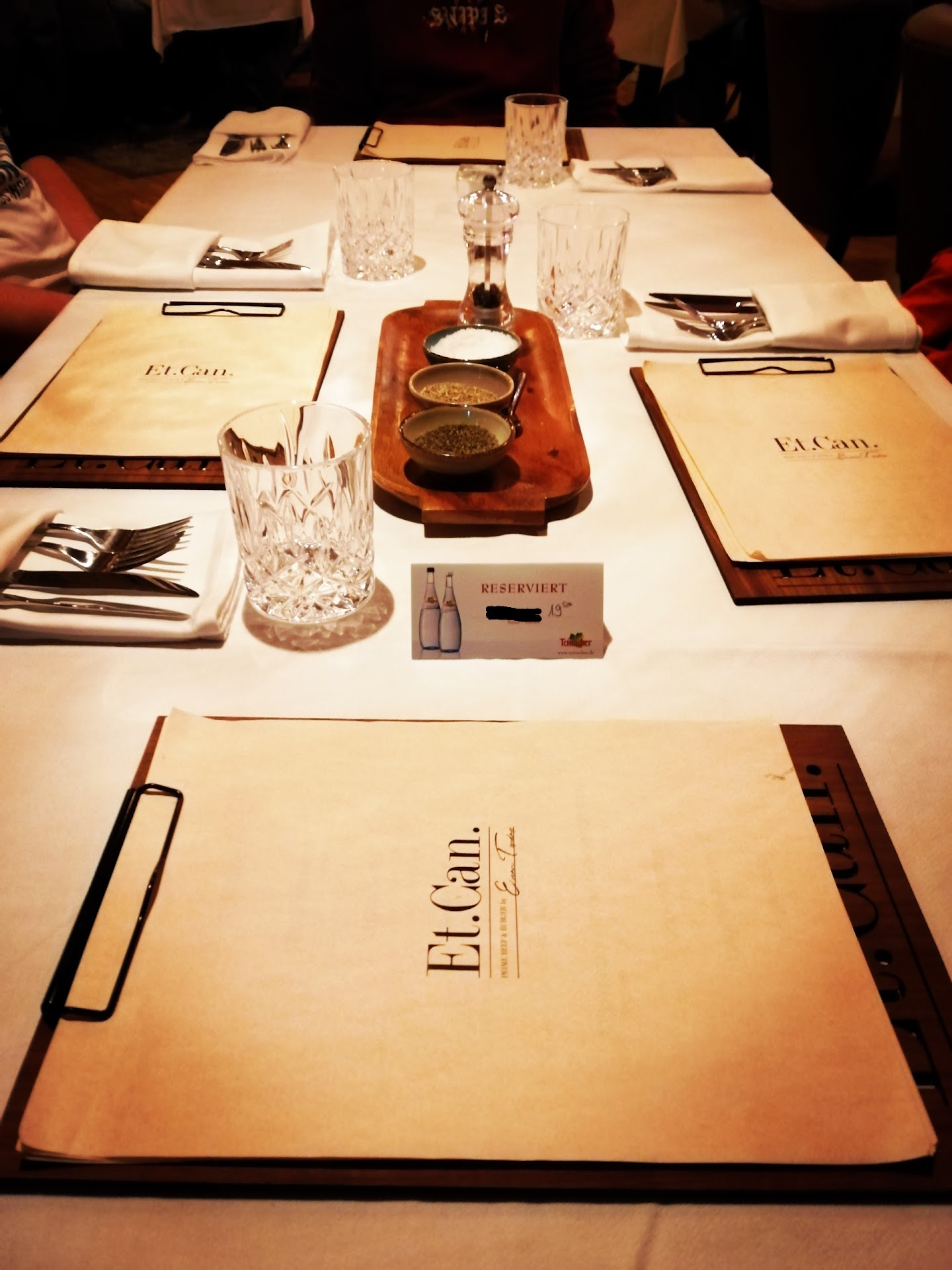 Die Speisekarte ist öffentlich auf der Website zu sehen nicht übertrieben aber ausreichend an den Angeboten. Qualität statt Quantität, sage ich da nur. Die Burger/Kreationen sind gelungen und die Portion ist sehr gut und schmeckt lecker. Jeder Burger hat Beilagen inkl. Das "Filet Steak" ist einfach nur Himmlisch, wirklich ein Meisterwerk. Wenn ich könnte würde ich 10 Sterne geben. Zergeht auf der Zunge, ein wahres Gedicht. Die anderen Steaks werde ich natürlich mit der Zeit auch probieren :-) Für einen kleinen Aufpreis kommt der Chef persönlich und bereitet es am Tisch an. Empfehlenswert ! Zu jedem Steak gibt es eine Beilage inkl. Zu den Vorspeisen: also den EtCan Salat kann ich wärmstens empfehlen. die Portion reicht für eine Erwachsene Person man sollte eigentlich Hauptspeise dazu sagen. Und der Geschmack ist Mehr als 5 Sterne wert. Wartezeit von 30-40 min. sind ok für das Essen, da alles frisch zubereitet wird und vorallem nachher so lecker schmeckt. Konnte leider nicht die ganze Karte testen auf einmal, aber das was ich probiert habe war wirklich einfach nur Lecker.
