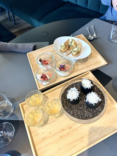 Das Ambiente im Restaurant ist angenehm modern und bietet einen hohen Wohlfühlfaktor. Die Einrichtung ist stilvoll und geschmackvoll, ohne dabei steif zu wirken. Es herrscht eine entspannte Atmosphäre, die perfekt zum Genuss eines exzellenten Essens und erstklassigen Weins passt.