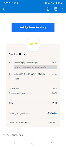 Read moreDas Essen kam zwar zügig an allerdings wurde das Getränk vergessen obwohl dies bezahlt wurde. Dies wurde dem Fahrer direkt mitgeteilt, daraufhin versicherte er, dass das Getränk umgehend nachgeliefert wird (hier lag keine weite Entfernung vor) , es sei etwas stressig heute war die Aussage. Stress hin oder her die Bestellungen sollten vor Ausgang auf Vollständigkeit überprüft werden, 3,00 € für das Getränk ist jetzt auch nicht Billig. Das Getränk kam natürlich nicht mehr bei uns an. Die Pizza war mir ganzen Pfefferkörnern versehen und alle gefühlt nur auf einer Stellle auf jedem Stück verteilt. Die Nudeln waren kaum gewürzt, haben leider nach...