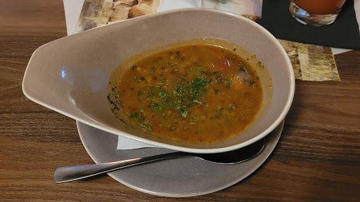 Mit dieser Bewertung tue ich mich tatsächlich schwer. Qualitativ war das Essen "gut" und schmeckte. Ob 19,50 EUR dabei gerechtfertigt sind für das abgebildete vegetarische Gericht ist Ansichtssache und bleibt daher ohne Berücksichtigung in meiner Bewertung. Warum dann nur diese Bewertung? Aus vielen Gründen: Am Abend unseres Besuches saßen insgesamt an drei Tischen Gäste. Die Bedienung war alleine. Es dauerte dennoch alles viel zu lange: Getränke nach 20 Minuten, Vorspeise nach 35 Minuten, Hauptgang nach 55 Minuten. Alisha durfte meine Gattin nicht bestellen, wörtliche Aussage: "davon haben wir nicht mehr so viel". Bei den langen Wartezeiten hätte ich eine frische Zubereitung erwartet, was nach der Aussage aber nicht zu sein scheint. Leere Gläser wurden abgeräumt, aber nicht gefragt, ob man noch etwas haben möchte. Und wir hätten gerne noch mehr getrunken und auch ein Dessert genommen, hätte man es angeboten und hätten wir nicht erneut ewige Wartezeiten befürchten müssen. Besonders anstrengend fand ich, dass die Bedienung aller 2-3 Minuten durch das Lokal stürmte und die Treppen hoch flitzte. Im wahrsten Sinne. Das anzusehen verbreitete eine gewisse Unruhe/Streß am Tisch und ist für lokale sonst doch höchst unüblich. Warum kann man nicht gemäßigten Schrittes, ruhig laufen? Am Ende kam die Überraschung: keine Kartenzahlung ano 2022 möglich. Einen deutlichen (!) Hinweis haben wir weder am Eingang noch in der Karte vorab gesehen. Für unsere weite Anfahrt nur um hier zu Abend zu essen, würden wir...