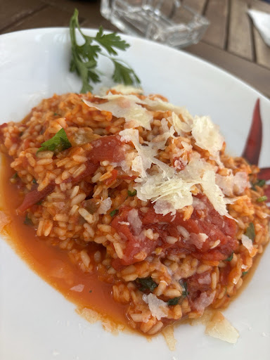 Read moreDieses Restaurant wurde in Genthin in kurzer Zeit sehr beliebt und ich kann nicht ganz nachvollziehen, warum. Die Caprese kam mit einem kalten, sehr zähen und geschmacklosen Mozzarella, den man sonst nur auf Brötchen einer Bahnhofsbäckerei findet. Die Hauptspeisen waren unterschiedlich in der Qualität. Die vegetarische Auswahl ist relativ klein; ich wählte Gnocchi mit Gorgonzola, was, wie oft der Fall ist, sehr sahnelastig war. Das Steak war sehr gut, aber leider wurde nicht, wie es sich gehört, nach der Garstufe gefragt, sondern es wurde einfach medium serviert. Die Crème brûlée zum Dessert kam, nach großer Vorfreude, leider unflambiert. Sie war trotzdem lecker, wird aber so natürlich wortwörtlich dem Namen nicht gerecht. Ich konnte meine Verwunderung darüber beim Personal nicht mehr äußern, da leider niemand mehr an den Tisch kam. Wir gingen an die Bar zum Zahlen. Das Ambiente ist draußen und drinnen sehr gemütlich. Wir saßen bei Gewitter...