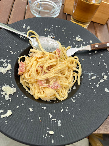 Ich hatte das Schnitzel Bolognese, natürlich ist es Geschmackssache aber ich hatte nichts auszusetzen und bin ein Fan von den breiten Pommes. Also immer gerne wieder Preis-Leistung stimmt und