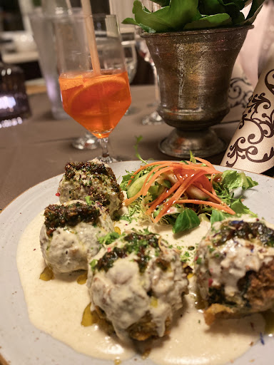 Read moreDie Gaststätte wurde mir bisher immer nur empfohlen. Ich nahm meinen Geburtstag als Anlass, um mit meinen Mädels dort zu dinieren und den Abend ausklingen zu lassen. Von Außen ist das Lokal eher unscheinbar und wirkt eher wie ein Kindergarten. Aber wenn man rein geht, wird man von einem gut durchdachten Innenraumkonzept überwältigt. Die Einrichtung ist dunkel, aber modern gehalten. Wenig Deko, dafür aber stimmig, was mir besonders gut gefällt. Das Lokal wirkt dadurch größer und offener. Man war gut auf den Geburtstag eingestellt. Hochwertige Servietten, farblich passende Blumentöpfe und Tischlampen rundeten den Tisch ab. Für meinen Geburtstagsblumenstrauß war das Personal flexibel und einfallsreich: man organisierte einen Wasserkübel für die Blumen (siehe Foto). Fand ich super. 👍🏼