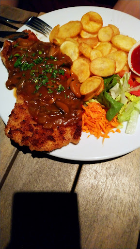 Ein richtig netter Treffpunkt für Menschen jeden Alters, die es in total rustikaler Atmophäre bei rockiger Hintergrundmusik mit Freunden locker und !! lecker mögen!! Preis/ Leistung ausgewogen und auch Kinder finden hier ihr Lieblingsessen. Drinnen wie im tollen Biergarten dürfen die Kurzen rumlaufen, draußen sogar auf Spielgeräten tollen. Das Personal ist versiert und echt gut drauf! Einfach zwei Stunden wohlfühlen, viel mehr als nur satt werden!! Übrigens, zwei Dinge noch: unbedingt irgendwann am Tag auf AB Tisch bestellen, besser ist das und Nette Hunde dürfen gerne...