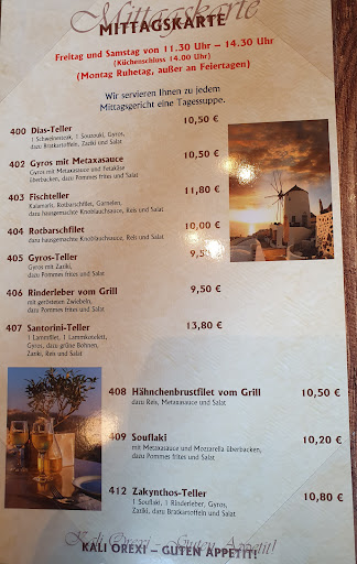 Read moreZuerst zu den Parkplätzen: diese sind li. und re. der Einbahnstraße kostenfrei vorhanden- aber leider nicht ausreichend, so dass ich zum Erreichen des Ziels (an einem Wochetag) schon eine größere Wegstrecke zurücklegen mußte. 🤔 Überraschend war für mich zuerst die stil-/ und geschmackvolle Einrichtung des Gastraumes! Gespeist wurde nach "Mittagskarte" am 24.09.2023. Ohne Vorbestellung erhielten wir (2 Personen) sofort einen freien und gesäuberten Tisch zugewiesen. Die Service war für uns beide beispielhaft gut: schnell, aufmerksam und sehr freundlich.👍 Zum Mittagsgericht gab es für jeden Gast zuerst einen Ouzo und ohne Aufpreis eine Linsen-Vorsuppe. Mit dem Haupt-Gerichten "Gyros mit/in Metaxasoße u. Pommes" bzw. "Rinderleber vom Grill", waren wir beide sehr zufrieden. Sehr lecker!😋 Auch Ouzo wurde übrigens ausreichend nachgeschenkt. Auffällig war für mich auch der gesamte Sanitär-/Toilettenbereich: er war neu und beispielhaft sauber! Als "Gera- Besucher" empfehle ich dieses Restaurant und werde es auch selbst wieder...