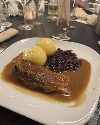 Read moreWooow was für ein tolles Restaurant mitten im Stadtwald von Gera. Hier war schon die Anfahrt ganz im Dunkel der frühen Nacht ein Erlebnis. Angekommen am Restaurant, waren wir von der schön beleuchteten Außenerscheinung des Jagdhof ganz angetan. Also gingen wir voller Vorfreude auf ein gutes Essen hinein. Der Empfang am Eingang war herzlich und sehr freundlich. Wir bekamen einen wunderschönen kuscheligen Platz in einer lauschigen Ecke. Kuschelig auch deswegen, weil wir rechts und links von unseren Sitzplätzen viele schöne Fellkissen liegen hatten. Wir bekamen die Karte, bestellten uns jeweils einen lecker italienischen Rotwein ( meine Frau einen Merlot und ich einen Rotwein aus der Toscana). Beide trocken und sehr lecker. Dem Jagdhof angemessen aßen wir Wildschweinbraten mit Pilzen und Hirschgulasch mit Rotkraut und jeweils 2 Klöße dazu. Das Essen war ein Gedicht, dies kann man bedenkenlos weiter empfehlen. Als Nachtisch genehmigte ich mir noch Waffeln mit heißen Kirschen und einer Kugel VanilleEis. Auch dieser zauberte mir ein großes Lächeln auf die Lippen. Es war einfach ein rundum schöner Abend umrahmt von Herzlichkeit und Gaumengenüssen. Wir danken dem Team des Jagdhof und wünschen Ihnen alles Gute für...