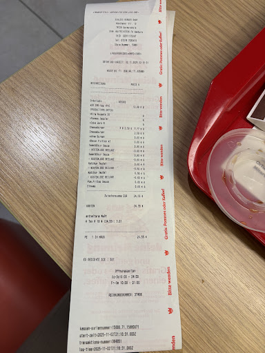 Read moreVorneweg wir waren jahrelang sporadische Kunden in dieser Burger King Filiale. Nun ist aber ein Punkt erreicht wo wir stinksauer sind. Beispiel (Mc Drive): Eine etwas korpulente Dame bedient uns, zwischendrin verschwindet sie Einfach (man denkt sich gut ungewönlich aber ok) andere Kollegin übernimmt und bedient zu ende. Als wir Zuhause waren wollten wir das Essen reintragen als plötzlich einer der 0,5l Cola Becher einfach mehr oder weniger "zusammensackt" weil er so durchweicht war. Natürlich war der ganze Inhalt dahin + die ärgerei mit dem aufwischen. Dauraufhin schaue ich mir beide Becher an und merke das Sie extremst aufgeweicht sind... keine ahnung wie sowas möglich ist aber ich nehme an die Becher standen einfach eine Ewigkeit in der Filiale rum (gefüllt!). Gut ok, kann im Notfall noch passieren sowas dachte ich... Dann öffnet man die "Essenstüte" und stellt direkt fest das die Burger mit Käse belegt sind (obwohl ausdrücklich gesagt wurde bitte ohne Käse). Was den falschen "Belag" angeht hat sich dieses mehrfach schon wiederholt. Dazu kommen "laprige Pommes" etc. Also liebes Management Team von Burger King, ich werde in zukunft diese Filiale nie wieder besuchen weil die Qualitätsmängel einfach unterirdisch sind. Man hat den Eindruck das die Mitarbeiter lieblos ihrem Job nachgehen und das "schmeckt" man dann auch... Ich weiß ja nicht wer dort zuständig ist als Teamleiter für die Qualität etc. aber diese Person macht ihren Job nicht! bzw. leider nur...