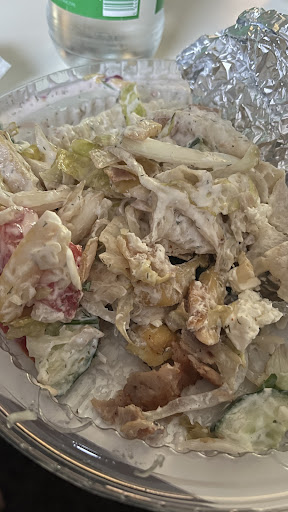 Der Salat ist ⚠️trocken und ⚠️faulig. Der gleiche Salat ist auch im yufka. Von daher geht das genau so beides in den Müll.