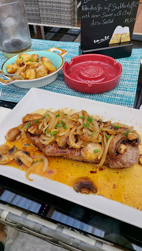 Hier gegeten tijdens onze vakantie. De bistro is onderdeel van een tenniscomplex. Het eerste wat opvalt bij binnenkomst is dat er gerookt wordt. Alhoewel het rook gedeelte is "afgesloten" van het zitgedeelte door een glazen deur helpt het niet dat dit de bar is waar regelmatig mensen in en uitlopen. Maar ja, vroegah was dat ook normaal in NL en wij zijn dat schijnbaar niet meer gewend. Wellicht is hier iets te winnen met afzuiging in de bar? Vandaar ook de mindere beoordeling qua sfeer. De bediening was heel informeel en vriendelijk en het eten was helemaal top. Mijn gezelschap had schnitzels in diverse varianten (hawai en zigeuner) en die smaakten allemaal super. Zelf had ik gepaneerde varkenshaas met jägersaus fie ook fantastisch was. De gerechten waren veel en veel beter en groter dan in het restaurant van het Landal park waar we zaten. Het was jammer dat we hier niet de eerste avond van ons verblijf zijn geweest, anders waren we (ondanks de rooklucht) hier ook voor de 2e...
