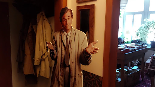 Was für ein Erlebnis! Dieses Café im Kriminalhaus in Hillesheim ist ein Muss für Krimifans und ein Soll für alle anderen ;) Unten (am besten zuvor ein Tisch reservieren) wandelt man durch verschiedenen Zeitepochen der Kriminalgeschichte auf Papier und Leinwand. Man tritt über die Türschwelle und fühlt sich in die Vergangenheit zurückversetzt. Jeder Tisch ist einem Motto gewidmet (Übrigens coole Idee!) Nach einem leckeren Frühstück (Natürlich geht ein Besuch auch nachmittags) in einem kriminalistischen Ambiente, mit freundlichem Service (Danke dafür), begibt man sich in die oberen Etagen. Dort findet man einen weiteren Raum (den grünen Salon) und einem „kleinen“ Bücherraum. Klein, warum? Dazu komme ich gleich! Achtung, nicht die Dame in der Ecke wecken ;) Im Treppenhaus steht Columbo und... hat meistens noch eine Frage... (Insider) Eine weitere Etage nach oben wird man positiv erschlagen von einem Fundus an kriminalistischem Spürsinn. Ich muss zugeben. Ich bin kein großer Krimifans. Vor vielen Jahren hatte ich noch Columbo, Mord ist ihr Hobby, Alfred Hitchcock die 3 Fragenzeichen, Miss Marple und Kommissar Kugelblitz gehört, gelesen und geschaut. Ich bin eher der Thriller Fan (Karin Slaughter, Simon Beckett und die Dreamjumper Trilogie ;) Aber in der riesigen Dachkammer fand ich es richtig Klasse! (Cluedo habe ich immer gerne gespielt) Ein großes Dankeschön an Ralf Kramp und alle, die dort mitgeholfen haben, so ein Krimiarchiv zusammenzutragen! Natürlich kann man sich dort ein Buch schnappen und sich in der geheimnisvollen Atmosphäre hinsetzen und lesen! Wirklich eine Tour wert! Für alle Leseratten unter uns, schaut es euch an!!! Ein paar Impressionen habe ich für euch! Viel Spaß! Kleine Info am Rande: Das Haus ist Barrierefrei und einen Aufzug bis ganz nach oben (Außer die Spieleecke) ist auch vorhanden! Parkplätze gibt es ein paar Minuten Fußweg entfernt (Keine Parkgebühr oder Parkscheibe...