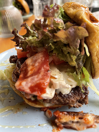 Read moreFangen wir beim Ambiente an, es war sauber und einigermaßen gemütlich aber nichts besonderes. Zum Service lässt sich sagen, dass wir erstmal 20-25min gewartet haben bis wir selbstständig auf das Personal zugegangen sind um wahrgenommen zu werden und eine Bestellung aufgeben zu können. Dazu muss man sagen, dass nur wir (2 Personen) und weitere 2 Personen im Lokal waren. Hinzu kommt zum Thema Service, dass wir ziemlich offensichtlich und dreist vom Chef/Koch angelogen wurden. Mehr dazu beim Thema Essen. Kommen wir nun zum Essen. Das Essen war geschmacklich wirklich gut und machte auch optisch einen positiven Eindruck. Wir wollten Pommes bestellen, jedoch war leider keine der verschiedenen Auswahlmöglichkeiten an Pommes vorrätig, als Alternative hat man uns dann einen Beilagensalat angeboten und das auch zum Preis der Pommes, was ich fair aber auch angemessen fand. Als Hauptgericht hatten wir beide jeweils einen Burger (siehe Fotos). Diese waren wirklich lecker, nur hat bei beiden Burgern einiges gefehlt, bei beiden fehlten Tomaten und Gurken und anstatt des angegebenen Rucola, gab es 2 Blätter Rucola gemischt mit Eisbergsalat. Bei dem Ziegenkäseburger der angegeben war mit Parmaschinken, fehlte der Parmaschinken, stattdessen war da etwas dickes, Bauchspeck ähnliches drauf gewesen (siehe Foto). Dies haben wir angesprochen und der Chef/Koch sagte, dass sei selbstgemachter Parmaschinken, jedoch war mein "Bacon" genau das selbe Stück Fleisch. Nachdem wir unsere Zweifel an dieser Aussage bekundeten, hielt der Herr jedoch an dieser fest und wir ließen das einfach mal so stehen. Des Weiteren wurde ein Früh Kölsch bestellt aber bekommen haben wir ein Reissdorfer Kölsch und das bestellte Radler kam leider auch in einem normalen Limo-Glas. Als wir dann am Ende zahlen wollten, kam der Chef/Koch aufgrund des Parma-Ärgernisses uns aber einen Euro entgegen, was wir nett fanden aber nicht hätte sein müssen, wenn man das bekommen hätte, was man bestellt hat.
