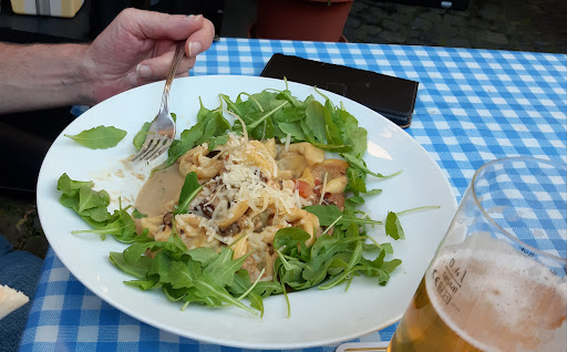 And yet it is a mysterious place, one that raises so many questions in the mind of the patron that we visited on two successive nights just to satisfy our curiosity: Did that spiral staircase really change direction half way up? Why is a cat curled up in my chair? Who are the featured artists in the subtle background music (because I know that wasn't Cat Stevens, or Michael Jackson, or the Beatles singing some of their greatest hits)? Were the tables, all of different design, bought at a flea market?) How did the waitress (different local girls on the two nights we were there) understand anything the owner, Massimo Tamburo, said? (Let's call his amalgamation of German and Italian “Ditaliano”, because it is certainly more Italian than German.) How big are the pizzas? (28 centimeters in diameter, as it turns out.) Why is there so much arugula ("rocket" for you speakers of British English) on the menu? And why is it spelled with two c's ("ruccola"), which is neither German nor Italian? Will a pasta dish satisfy my appetite? (It sure did mine.) Is Bitburger beer better on tap than from a bottle? (Much.) Is the house red wine any good? (Surprisingly so.) Is it the best Italian food I’ve ever had? (Not by a long shot.) Is it the best Italian food I’ve had outside of Italy? (Nope.) Is it enjoyable Italian food? (Absolutely.) Is it a good value for the money? (Yes, particularly compared to what’s available in the local hotel restaurants.) And most importantly, would I visit again even if I had all the answers to the questions that were gnawing at me? (Yes, without...