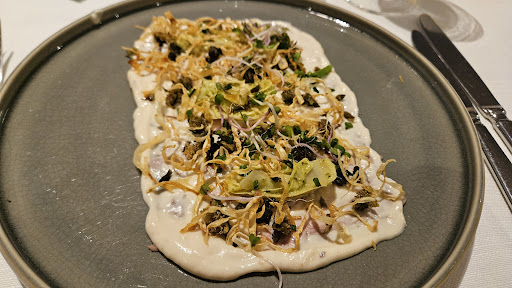 Read moreWir haben 2 mal das 5 Gänge Menü vorbestellt. Das Menü war den Preis von 110€ pro Person absolut nicht wert. Bei einem vorbestellten 5 Gänge Menü erwarte ich das eine Menükarte am Tisch steht. Ein Hauptgang war geschmortes Lamm. Das Fleisch war sehr trocken. Wir hatten das Lamm reklamiert. Die Bemerkung war ich geb es an die Küche weiter. Zum Service. Der erste Gang kam vor den Getränken. Es wurde weder nach Unverträglichkeiten oder Gargraden gefragt. Es wurde auch bei leeren Getränken erst sehr spät nachgefragt. Es standen Gläser auf dem Tisch als wir kamen. Das nicht benötigte Glas wurde bis zum gehen nicht weggeräumt. Der Nachbartisch wurde als Abstellfläche für lehre Gläser genutzt. Man hat auf den ersten Blick erkannt das die Kellner nicht ausgebildet waren. Gläser falsch auf den Tisch gestellt. Tragen der Speisen und Getränke ( manchmal Finger im Teller beim Essen). Die Tischdeko bestand aus einer vertrocknete Pflanze. Bei dem Preis habe ich eine andere Erwartungshaltung an die Speisen und an die Bedienung. Mich verwundern bei der Leistung auch die Auszeichnungen am Eingang. Wir besuchen öfter gehobene Lokale. Allerdings war der Besuch der bisher...