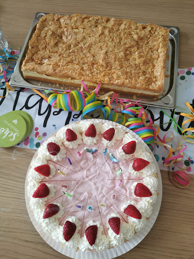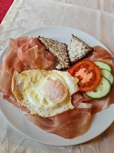 Es hieß erst nur ein Kuchen noch da. 3 Minuten später war die Theke wieder voll. Der Kuchen schmeckte aber. Der Kaffee war dünn und bitter. Wie ein Filterkaffee der zu lange steht. Anstatt dem Kuchen wurde kein Rosinenbrot angeboten, weswegen wir eigentlich gekommen sind. Wenn man auf den Hof fährt gibt es links ein Schild Fleischverkauf. Dort war geschlossen, man konnte durch das Fenster was aber sehr dreckig war die Metzgerei sehen. Davor stand eine alte Bank mit einem Aschenbescher der wohl nie geleert wird. Darüber ist ein Aushang mit den Speisen, allerdings hängt da alles schief drin und es ist sehr dreckig. Sowas mindert den Gesamteindruck. Links auf dem Weg zum Café sieht man Müll wie alte Tresore oder hinter den Fenstern Eimer für Mayo und Co. Alles nicht schön. Am Eingang dann die Theke wo das Brot um 15:00 Uhr zumindest nicht da war. Der Chef ganz nett aber keine Kreditkartenzahlungen. Weil es in den Ecken draußen so ungepflegt war sind wir nicht auf die Toilette gegangen. Ansonsten wird Gastfreundschaft klein geschrieben. Keine Fahrradständer, keine Ladestation für e-Bikes keine überdachten Sitzplätze draußen und keine Überdachung für Radfahrer oder beschilderte Parkplätze für Autos. Ich vermute das eine elektronische Bezahlung unter anderem deswegen nicht gewollt ist weil man dann ja Rechnungen schreiben müsste. Sowas wie eine Fiskalische Kasse gibt es nämlich nicht. Daher 0 Sterne. Der Laden hätte das Potential einfach auf 5 Sterne zu kommen und ein echter Publikumsmagnet zu werden. Wie das gehen...