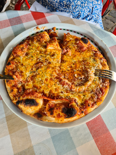 Eine Pizzeria wie sie sein sollte! Ich muss gestehen ich habe es nicht einmal in die Pizzaria hinein geschafft. Durch eine Dienstreise in diese Gegend bin ich auf diese Pizzaria gestoßen. Wir haben uns einfach davor gesetzt unter einen großen Sonnenschirm und ließen uns bedienen. Und ich muss gestehen, klasse! Ich habe mir einen Kaffee und eine einfache Pizza mit Kochschinken und Pilzen bestellt, mein Kollege eine "Überraschungspizza"! Der Kaffee... Naja ich habe schon bessere getrunken, aber er war ok (dafür trinke ich zuviel Kaffee)....Und dann die Pizza. Dünner, knuspriger Boden mit leichter "Blasenbildung".... Ich glaube durch einen sehr guten Steinofen. Der Belag war absolut ausreichend, saftig und trotzdem knusprig. Hat mir extrem gut geschmeckt. Mein Kollege hat eine sehr gut und reichhaltig belegte Pizza bekommen mit Paprika, Pillen, Salami, Schinken, Brokkoli und vielen anderen Dingen. Und es sah aus als hätte es ihm sehr geschmeckt. Und dabei habe ich deutlich unter zehn Euro für Pizza und Kaffee, und der Kollege etwas mehr als zehn Euro für Pizza und eine Cola gezahlt. Perfektes Preis-Leistungs-Verhältnis. Sehr empfehlenswert. Vier Sterne mit deutlicher Tendenz zu...