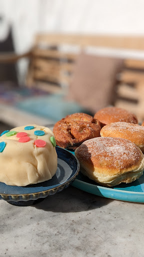 Alle Backwaren (Bio-Dinkel Krapfen mit Apfel und Kirsche, Hagebutten-Krapfen und besonders die Marzipankartoffel) haben uns vorzüglich geschmeckt. Nicht zu fett und genau die richtige Menge an Füllung. Sehr empfehlenswert!