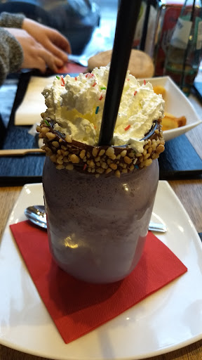 FANTASTIC! THE BURGER WAS DELICIOUS! It was the perfect size - even though I couldn't finish it. I ordered the cheeseburger and it was the best decision in my life. The wedge fries were so crunchy! And they had they perfect seasoning. I ordered a blueberry milkshake. It came in a nice glass cup, with Chantilly on top and some Nutella. The flavour was good, but I'd say I'd make it thicker next time. The place itself is cozy, and the staff was nice. They spoke English and German. The cheeseburger was 5 euros something, the milkshake was 4 euros, and the fries were 2 euros something. Excellent! Will...