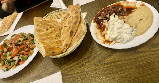 Ein Highlight war die Grillplatte, die wir bestellt hatten. Wir durften das Fleisch auswählen, und da wir eine große Gruppe waren, haben wir die Grillplatte etwas angepasst, um sicherzustellen, dass jeder etwas finden konnte, das ihm schmeckt. Das frisch gegrillte Fleisch war hervorragend – zart, saftig und perfekt gegart. Die Beilagen konnten sich ebenfalls sehen lassen, der Salat war frisch und knackig, der Hummus cremig und geschmackvoll, und die Joghurtsauce sowie die scharfe Sauce passten perfekt dazu. Das gegrillte Gemüse rundete das Gesamtbild ab.