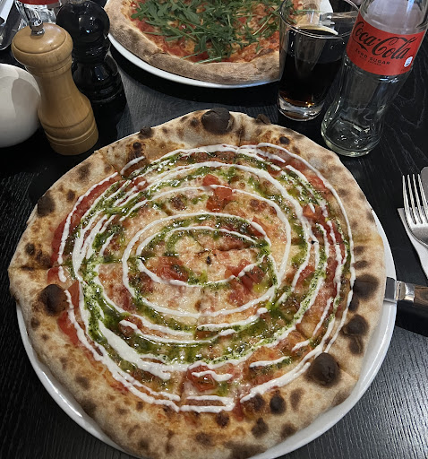 Die Pizza ist lecker, allerdings verhältnismäßig teuer - und da man ja irgendwie nicht nur für das Essen „bezahlt“, sondern auch für guten Service kann ich nur sagen: ABSOLUT NICHT EMPFEHLENSWERT. Der Service ist UNTERIRDISCH; wirklich nicht von dieser Welt! Bis auf ein sehr netter italienischer Kellner mittleren Alters sind alle weiteren Mitarbeiter - und vor allem der Chef - unfreundlich und ungastfreundlich. So darf man einfach nicht mit seinen Gästen umgehen… Zu unserer 45 min Erfahrung in diesem Lokal heute Abend: Wir sind spontan vorbei gekommen, zu zweit mit einem Baby und fragten ob etwas frei sei, ansonsten würden wir weiterziehen. Man bejahte und gab uns einen winzigen Tisch zu zweit im Flur - aber okay. Das wäre gar kein Problem gewesen. Das „Problem“ in Gestalt eines Chefs kam zwei Minuten später, wir haben nicht mal die Getränke bestellt, mit den Worten „soll jetzt nicht negativ klingen (klang aber so in dem Ton 😅, sehr negativ!!!) aber das muss jetzt hier schnell gehen, brauche den Tisch gleich“. Offenbar hält sich die Lokalität für ein „gehobeneres“ Lokal, aber die Speisekarte wirkt wie vom Imbiss - einfach in Papier. So auch die Weinkarte. Meine kleine 13 Monate alte Tochter bekam leider eine dieser zerfledderten und zerknickten Weinkarten aus Papier in die Hand und hat damit die zweite Büroklammer, die die Seiten in der Mitte zusammen halten, dann gelöst. Die Karte wurde uns dann mit 5 euro(!) in Rechnung gestellt. Das wurde uns nur ganz schnippisch und arrogant von der Bedienung mitgeteilt, die von dem Satz „der Gast/kunde ist König“ auch noch nie etwas gehört hat, denn so unfreundlich und einfach schlecht wurden wir noch nie bedient. Man kann diesem Lokal einfach nur freundliches Personal wünschen, es ist wirklich ein Armutszeugnis. Eigentlich hatte ich das Lokal vorab ausprobieren wollen für eine Feier - nun bin ich sehr sehr froh, mir ein Bild der Lokalität gemacht zu haben und mir so ein freundlicheres Ambiente mit netten Bedienungen suchen zu können. So macht ausgehen einfach kein Spaß.