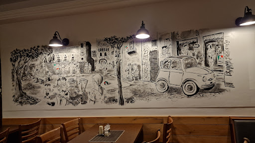 Read moreDas Ambiente ist relativ gemütlich, von Charakter her durchschnittlich. Die Bewertung des Essens fällt ambivalent aus. Während das Jägerschnitzen gut gewürzt und paniert und die Pommes Frites in Ordnung waren, ließ die Jägersoße etwas zu wünschen übrig. Hier wären frische Pilze ein eindeutiger Gewinn. Die Bruschetta war lecker; knusprig geröstetes Weißbrot, der Belag war für die Jahreszeit gut und frisch. Etwas schlechter fällt die Bewertung der Canneloni aus. Das Gericht wurde heiß serviert, Käse und Soße waren schmackhaft. Allerdings erwarte ich bei einem nicht-vegetarischen Gericht eine Bolognesefüllung der in diesem Fall ein wenig zu al dente geratenen Nudelteigrollen und keine völlig vermatschte Angelegenheit, die als Farce bezeichnet wurde. Hier gibt es deutliche Verbesserungsmöglichkeiten. Ein weiterer Punkt war der Service. Er funktionierte zuverlässig, hatte jedoch bei der korrekten Aussprache der italienischen Gerichte seine Mühe. "Bruschetta" wirkt in einem italienischen Restaurant unprofessionell (korrekt: "Brusketta"). Solche Fehler mögen Kleinigkeiten sein, lassen sich...