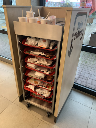 Read moreEs scheint der Burger King der Mangelerscheinungen zu sein. Ich war abends (19 Uhr) am 19.04.18 dort, das Restaurant war nur mäßig besucht. Teils wurden Produkte am Tresen beworben, die gar nicht mehr erhältlich sind. Die Verfügbarkeit von Käsesticks musste erst in der Küche erfragt werden. Von 2 Getränkeautomaten war einer ausgefallen, der andere hatte viele Produkte nicht (z.B. keine Mezzo Mix). Die Pommes hatten zu wenig Salz (scheint aber im Sinne einer besseren Ernährung generell so zu sein). Ein Eis zum Nachtisch? Die Eismaschine ist aus... Da es an diesem Tag keine Großveranstaltung o.ä. gab, kann ich diese vielen fehlenden Produkte nicht nachvollziehen. Zudem habe ich nicht den bestellten Burger erhalten - leider nicht den Bon mitgenommen. Meine Wiederholungsgefahr in nächster Zeit ist eher gering. Außerdem eine ganz wichtiger Appell an alle Burgerschmieden: Hängt endlich PAPIERSPENDER in den Toiletten auf! Viele möchten diese Bakterienheißluftspender nicht benutzen. Häufig wird der Aspekt Umweltschutz als Argument gegen Papierspender angeführt. Ich kann mir nicht vorstellen, dass die Stromerzeugung für einen immer wieder anlaufenden Heizlüfter umweltfreundlicher sein soll. Außerdem werden so die Servietten...