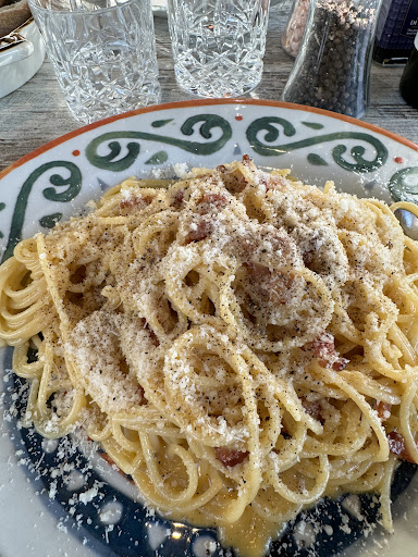 I visited this restaurant with 6 friends and we had a wonderful time. The atmosphere was very pleasant, and we especially enjoyed the outdoor seating. The pasta was excellent – perfectly cooked. I had the tagliatelle with carbonara, and it was just as it should be. The meat lasagna also received a lot of praise at our table, especially for its delicious tomato sauce.