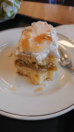 Die Speisekarte im Café ist ebenfalls großartig. Es gibt viele leckere Kuchen und Torten, sowie herzhafte Snacks wie belegte Brötchen und Suppen. Besonders zu empfehlen ist der Apfelkuchen, der frisch gebacken und einfach köstlich ist.