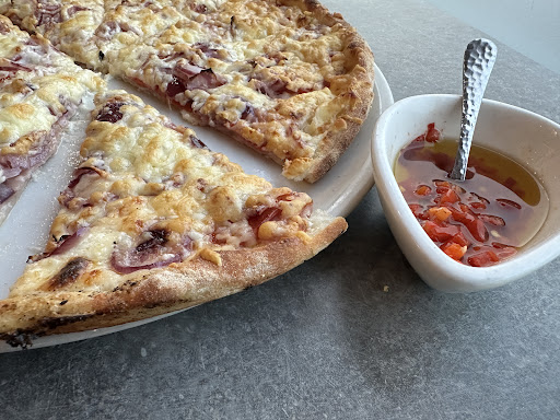 Aus diesem Grund bin ich persönlich dort erschienen und wurde sehr freundlich bedient. Habe ausdrücklich bei der Bestellung darauf hingewiesen, dass wir keine "nassen" Pizzen mögen und auch ausdrücklich "knusprig" bestellt.