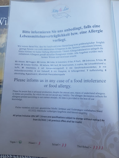 Read moreWeil es echt ist. Und super lecker wer es gerne scharf mag kann es auch sehr scharf bekommen wenn man bescheid sagt ansonsten ist die Schärfe sehr gut auszuhalten ich selber esse nicht gerne scharf. Also wer diese Küche mag sollte dort unbedingt mal hin und genießen. Guten Hunger 👍 wie ihr seht waren wir wieder beim Thai lecker Essen echt wir sind soooo begeistert diesmal bekamen wir aufs Haus ein selbstgemachten eistee wirklich lecker fruchtig süß und gleichzeitig herb. Echt erfrischend. Wir können nur immer wieder sagen lecker lecker lecker. Probiert es aus. Ja wie ihr seht sind wir öfter hier weil es echt lecker und frisch ist und wenn man sagt man möchte etwas nicht zb Koriander dann wird er auch ohne probleme weggelassen kitty und Leo sind ein junges sehr freundliches Paar und sehr authentisch. Wir haben uns vorgenommenen jedes Gericht der Speisekarte auszuprobieren ich halte euch gerne auf dem laufenden aber das beste wäre ihr probiert es selber aus. LG an alle Leser. Hallo liebe Genießer wir waren wieder bei kitty und Leo die Fotos sind schon drin ich kann nur sagen es war wieder total lecker heute hatte ich einen Thai Rindfleisch Salat hammer echt geil sorry aber man kann es nicht anders sagen und als Vorspeise hatte ich wan tan Suppe köstlich. Also bis dann und...