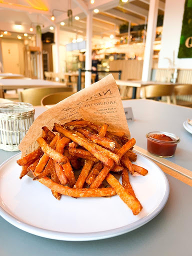 Read moreMeine Freundin und ich waren gestern Abend gegen 19.30 Uhr hier (Lauer Tag, 20 Grad) Unfassbar schönes Ambiente. Liegt geschützt und sehr romantisch eingebettet in ein kleines Waldstückchen direkt am Yachthafen und Ruheforst. Wunderschöne Dekoration, sehr geschmackvoll und modern gestaltet. Drinnen ein paar Tische, draußen auf der treppenmäßig angelegten Terrasse Tische mit großen Schirmen, so dass man auch bei ein bisschen Niesel gestern toll sitzen konnte. Aufmerksam: Fleecedecken für kühlere Abende. Die Speisekarte ist toll gemischt, die Preise passen zur Menge und Kreativität. Reichhaltiges Kuchenangebot. Wir hatten Quinoa Bowls, die ausgezeichnet schmeckten und die Menge war einfach perfekt. Kleine Extrawünsche wurden von sehr freundlichen Mitarbeitern anstandslos erfüllt. Tolle Getränke, nachhaltige und regionale Anbieter zu fairen Preisen. Selbstbedienung bei Getränken und Speisen. Es gibt ein Gerät mit, das sich meldet, wenn das Essen bereit steht. Alles in allem eine absolute Empfehlung für einen genussvollen Nachmittag oder Abend mit leckerem Essen, schönen Getränken und einem herrliches Ambiente und Blick...