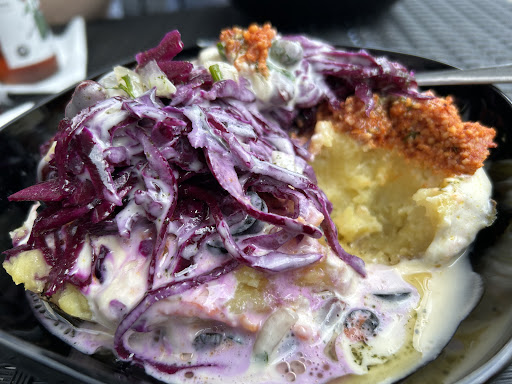 Read moreDie Kartoffel war bei den letzten Malen nicht mehr so lecker, wie man es aus früheren Zeiten kannte. Leider hat sich auch mal wieder etwas am Preis geändert, so ist eine Kartoffel mittlerweile für 5 Euro zu erhalten, und inklusive sind nur noch fünf VERGARISCHE Toppings und zwei Saucen nach Wahl. Sucuk, etc. kostet grundsätzlich 0,50 Euro mehr. So gewinnt man leider keine Kunden und vergrault zusätzlich treue...