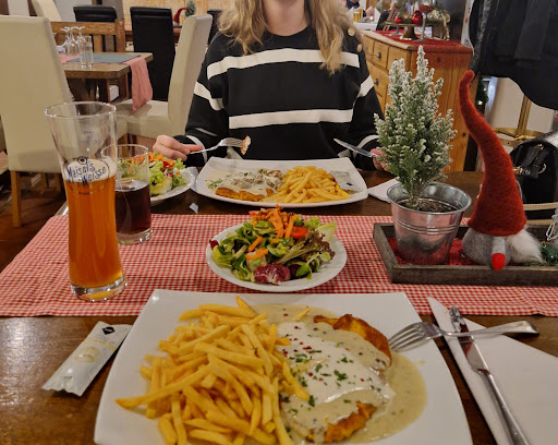 Wir wollten uns mit der Familie einen schönen Abend zum 2. Weihnachtsfeiertag machen.Als wir die Räumlichkeiten betreten haben, stiess uns sofort ein Geruch von ranzigem Fett entgegen, wonach auch unsere Kleidung im Anschluss roch . Nun ja ,wir dachten uns dabei dann noch nichts , die Räumlichkeiten ansich waren sehr schön und auch ansehnlich dekoriert. Dann kam die Kellnerin, reichte uns die Speisekarte und wir waren etwas verdutzt, da dort nur eine Weihnachtskarte vorhanden war und keine normale Speisekarte. Wir haben telefonisch den Tisch reserviert, leider wurde uns hier nicht mitgeteilt, dass NUR die Weihnachtskarte gilt, sonst hätten wir uns für ein anderes Restaurant entschieden. Auf der Homepage ist dieses leider auch nicht vermerkt gewesen. Zum einen mag nicht jeder Wild oder Gans mit Klößen, zum Anderen hatten wir aufgrund der Speisekarte im Internet das Restaurant gewählt (normale Küche, sprich Schnitzel, Ziegenkäse, Sauerbraten usw). Dazu waren die Preise für die Weihnachtskarte ganz schön hoch (35 Euro für Gans...habe ich persönlich in gehobenerer Gastronomie schon günstiger bekommen). Nachdem wir dann sagten, dass wir dann wieder gehen würden (wir waren 13 Personen), wurde uns eine alternative angeboten, welche wir dankend angenommen haben. Nun aber ein Wort zum Personal: Die Kellnerin mag in dieser Gastronomie für Zocker, Sauna- und Poolgäste, sowie für den Biergarten bestens geeignet sein, aber freundlichkeit geht definitiv anders und sollte, wenn auch nur für diese Zeit , nochmal überdacht werden. Der junge Mann der ab und zu Getränke gebracht hat wirkte auch nicht sehr motiviert. Das Beste aber zum Schluss: Als wir draußen warteten war auch das Küchenpersonal draußen und sprachen, nicht leise, über uns (wir waren die letzten Gäste). Fazit: Das erste, einzige und letzte Mal...