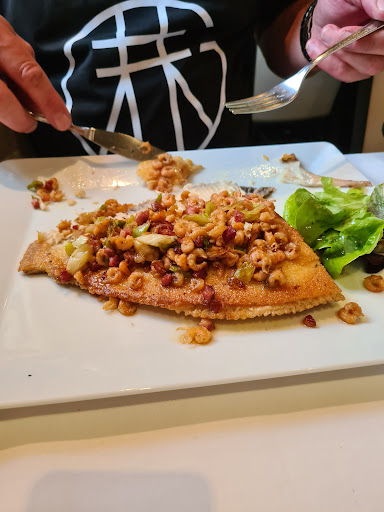 Imbiss oder Dönerladen ist die wesentliche bessere Wahl…. Ich versuche mich kurz zu fassen. Ambiente ist wie an einem Hauptbahnhof nur das man da eine bessere Auswahl hat und es wesentlich besseres Essen gibt. Wir waren an einem Sonntag da…. Die Vorspeise auf der Karte war nicht mehr verfügbar, also bekam man etwas was einer Rinderbrühe gleich kommen sollte….. ungenießbar….. Man bestellte den Hauptgang während man an einem Tisch saß, der im Hauptgang stand und im Rücken die Garderobe hatte. Während man gegessen hatte, wurde man aufgefordert Platz zu machen. Ein Ambiente das man nicht einmal in einen Durchgangs-Imbiss gewohnt ist. Es wurde ein Schnitzel serviert an dem nicht man die Panade haftete, so dünn war es, ein anderes Gericht konnte man nicht kauen weil der Sternekoch es verkocht hatte, das dritte Gericht hatte man offensichtlich,experimentell, versucht zu frittieren-wohl gemerkt es sollten Gambas sein. Ungenießbar, nicht zu sagen widerlich. Alle Hauptspeisen wurden probiert, schlussendlich nicht angerührt. Auf das Dessert haben wir allesamt verzichtet und sind in ein anderes Restraurant gegangen. Ich bin mir nicht sicher ob das Gesundheitsamt nicht interessiert sein sollte. Service, wohlwollend ausgedrückt…. Kennen nicht den Unterschied zwischen Wasser und Wein…. Dieses Lokal sollte man meiden…. Auch wenn man Verständnis für, offensichtlich körperlich eingeschränkte hat, man bezahlt nicht für einen schönen Abend und nicht für ein...