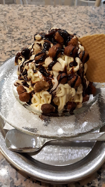 Absolut nicht zu empfehlen. Wir hatten einen Schoko-Haselnussbecher und einen Kokosbecher. Unterschieden haben sich die Becher lediglich durch Kokospralinenkugeln ähnlich wie Raffaello und Haselnusspralinenkugeln, die aber auch nicht im entferntesten von der Qualität her mit Rocher zu vergleichen sind. Beim Kokosbecher keine Spur von Kokos, weder Kokoseis noch Kokosstücke wie auf den Bildern in der Karte dargestellt. Bei den Kugeln waren je Becher 2 Kugeln dabei, die absolut ohne Geschmack waren. Evtl. einfaches Sahneeis. Der Löffel meiner Tochter ist hörbar heruntergefallen, es hat niemanden vom Personal interessiert. Die Bedienung ist einfach daran vorbei gelaufen. Außentempatur 13 Grad und alle Türen auf. Es war arschkalt. Einmal...