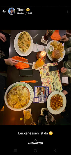 Ich hatte eine Gulaschsuppe für 5 €, welche nichts weiter war, als eine Dosensuppe die maximal noch verfeinert wurde. Da wollte ich eigentlich schon etwas sagen, aber meine bessere Hälfte hielt mich davon ab. (Wir haben wenig Zeit als Familie und wollten einfach einen entspannten Abend verbringen). Dann kam das Essen. Unser dreijähriger Sohn hatte eine Pizza Magharita, welche völlig lieblos angerichtet war und stark an eine TK-Pizza erinnerte (dies wurde vom Servicepersonal bestritten, der“Dosenverdacht“ der Gulaschsuppe wurde eingeräumt). Darüber hinaus war sie noch angebrannt. Dann hatten wir eine Lasagne, welche ebenfalls angebrannt war, aber immerhin gut schmeckte. Ich hatte einen „Schnibbelfleischteller“, welcher in Ordnung war, aber für den ich jetzt nicht extra Essen gehen würde. Jetzt wurde auch meine Bessere Hälfte sauer, denn wieder brauchte das Personal lange um an unseren Tisch zu kommen. Dann beschwerte sich der Tisch vor uns mit der Frage „Wie lange soll das Essen denn noch dauern?“, beim Tisch neben uns wurde eine komplette Betsellung vergessen, welche allerdings mit einer dicken ENtschuldigung und einem Freigetränk „behoben“ wurde. Hier möchte ich noch betonen, dass das Personal trotz einziger Fehler immer sehr freundlich war.