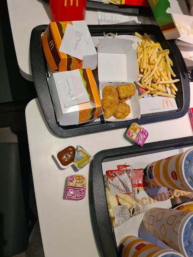 Read moreDieser McDonald's ist auf der Skala nach unten kaum noch zu unterbieten. Wer schnell etwas essen möchte - und das verstehe ich unter Fast Food - sollte einen großen Bogen machen. Wir haben auf eine Kindertüte und ein Brötchen mit Boulette zum Mitnehmen ganze 22 min gewartet. Die Frau neben uns ganze 30 min... In der Zeit bekomme ich in einem traditionellen Restaurant ein richtiges Essen! Mit Bedienung und die Getränke kommen dann trotzdem noch zeitiger. Der Manager - selber nur begrenzt der deutschen Sprache mächtig erklärte uns, dass es an den neuen Fachkräften in der Küche liegt: zu langsam und sie verstehen nicht was sie tun sollen. Da die Küche offen ist kann man dem Treiben beim Warten zusehen... Katastrophal! Es sind zwar 6 oder 7 Mitarbeiter in der Küche, aber es passiert eigentlich nix. Die Zutaten werden für jeden Burger gesucht. Wenn was fertig ist, wird's in eine große Warmhalteschale geworfen, bis es endlich jemand schafft, die Bestellung zusammenzustellen. Die Anzeigetafel zeigt nach einer knappen viertel Stunde die eigene Bestellnummer nicht mehr an... Die vielen Monitore sind so unübersichtlich, dass man gar nicht weiß, was man bestellen kann und was das dann kostet... Das Geld für die Renovierung hätte man sich sparen können Ronald McDonald würde sich im Grab...