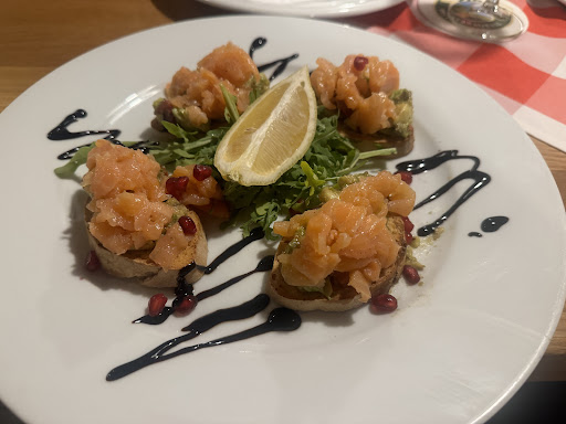 Read moreEin wirklich hervorragender Italiener mitten auf dem Land. Da wir nur draußen saßen kann ich nichts über das Ambiente im Inneren sagen. Der Außenbereich ist ganz klassisch gehalten mit Klappstühlen und karierten Tischdecken, dem obligatorischen riesigen Kastanienbaum, einfach Biergarten-Atmosphäre. Der Verkehr knattert halt bisweilen recht laut die Hauptstraße entlang. Die Vorspeisen waren ausgezeichnet, angefangen bei der Bruschetta, die nicht, wie so oft, lapprig und völlig durchweicht daher kam sonder knusprig lecker ganz frisch gemacht. Ebenso war der Vorspeisenteller mit Meeresfrüchten und gebratenem Gemüse einwandfrei. Dazu das offenbar hausgemachte kräftige Weißbrot im Korb, der ohne Aufforderung immer neu befüllt wird. Die selbst gemachten Ravioli mit Spargelfüllung und grünem Spargel waren einfach ein Gedicht. Die Scampi und die calamari vom Grill butterweich, herrlich mit Knoblauch Kräuter sauce. Der Beilagen Salat frisch und eben typisch Italienisch sehr sparsam angemacht. Überflüssig zu sagen dass auch die Steinofen Pizza keine Wünsche offen ließ. Sehr netter und aufmerksamer Service. Alles in allem unbedingt zu empfehlen. Wir...