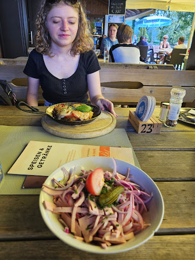 Read moreWir (zwei Familien) waren nach unserem Besuch im Strandbad mit unseren Kindern zum Essen hier. Das Ambiente draußen ist sehr schön und wir hatten eine freundliche Bedienung, die versucht aufzufangen, was dem Chef missglückt ist: da es draußen voll war, wurden wir gebeten drin zu sitzen. Während der Bestellung quengelte meine kleine Tochter (unangenehm) laut, woraufhin der Chef unserer Bedienung untersagte unsere Bestellung aufzunehmen, wenn ich nicht sofort das Kind zum Schweigen bringe. So etwas ist mir noch nie passiert. Die Bedienung entschuldigte sich für ihren Chef und bat mich zu bestellen. Eigentlich wäre ich gerne gegangen, wollte aber den anderen nicht den Abend vermiesen. Ich nahm meine (jetzt stille) Tochter auf den Arm und wartete draußen aufs Essen. Ich suchte den Chef auf und erklärte ihm ruhig, dass ich diesen Umgang sehr demütigend fand und mir von ihm eine Deeskalation anstelle einer Eskalation gewünscht hätte. Er sagte, das sei ihm egal. Ich verstehe, dass sich andere Gäste kurzfristig gestört fühlten und mir war es natürlich unangenehm, dass meine Tochter zwei, drei Minuten laut war (welche Eltern kennen diese peinlichen Situationen nicht?), aber der Umgang des Chefs mit der Situation war mehr als unpassend. Daher ist trotz leckerem Essem und netter Bedienung ein fader...