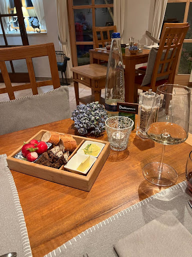 Kulinarisch überzeugt das Restaurant mit moderner europäischer Küche, die zum Teil asiatische Einflüsse aufgreift. Jede Speise ist frisch, kreativ komponiert und perfekt abgeschmeckt. Besonders beeindruckend ist die Kombination aus regionalen Zutaten und internationalen Akzenten, die jedes Gericht zu einem kleinen Erlebnis für Auge und Gaumen macht.