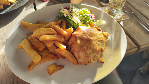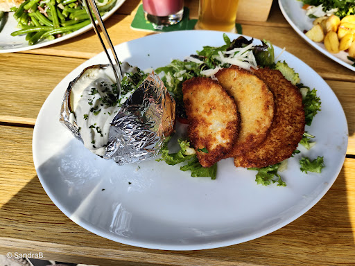 Also, an diesem Tag war das Restaurant sehr voll. Unsere Bedienung war sehr nett und teilte uns gleich mit,dass das Essen wahrscheinlich bis zu 45 min auf sich warten lassen könnte. Das haben wir so akzeptiert und uns an einen Tisch draußen gesetzt. Die Stühle waren angelehnt und wir haben sie dann aufgestellt. Kein Problem und dabei färzte uns dann eine andere Bedienung aus dem Innengastraum an,dass die Stühle nicht umsonst angelehnt wären. ????? Ja und? Was sollte uns das jetzt sagen? Dass wir uns auf den Tisch setzen sollen??? Das bemerkten wir dann auch bei der dritten,sehr jungen Bedienung,die dann kleinlaut mit piepst der Stimme sagte:" Das Gasthaus ist überfüllt, es sind zu wenig Leute und Sie sollten aufpassen ,dass diese Plätze mit den angelehnten Stühlen nicht besetzt werden."
