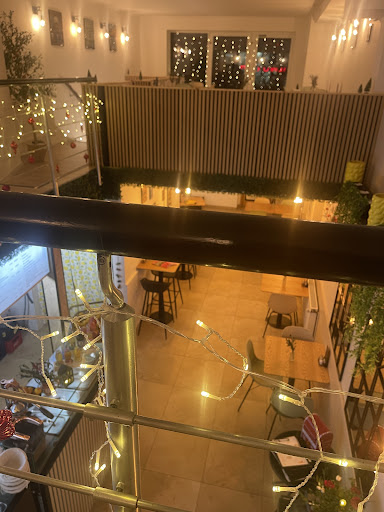 Das Restaurant ist kaum wiederzuerkennen im Vergleich zu den vorherigen verschiedenen Varianten (Döner, Burger, ...) und wirklich schön und modern eingerichtet. Die tolle Decke kommt nun auch besonders zur Geltung. 👍🏻 Die Stühle sind ein wenig kalt, was sich aber nach kurzer Zeit gibt. Da hier in einer offenen Küche gekocht wird, zieht auch etwas mehr Essensgeruch nach oben ins 1. OG, was man ggf. berücksichtigen sollte.