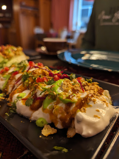 We ordered Indian chai (with milk) and several chaat items—Indian street food delicacies that are rare to find in most Indian restaurants here in Germany. Every dish exceeded our expectations. The bhel puri, a tangy, crunchy mix of puffed rice and a medley of chutneys, was bursting with flavor. The papdi chaat, made with crisp wafers and a blend of sweet and spicy chutneys, was equally delightful. The aloo channa chaat - a hearty mix of potatoes and chickpeas tossed in yoghurt and chutneys, and the samosa chaat - a comforting dish featuring crumbled samosas topped with chutneys and yogurt, were incredibly creamy, flavorful, and satisfying.
