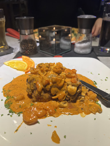 Read moreWir waren zum Valentinstag zum ersten Mal hier essen. Die Reservierung war unkompliziert auch über Google möglich. Wir waren sehr positiv überrascht. Das Restaurant ist nicht so leicht zu finden. Also ein bisschen ein Geheimtipp. Das Ambiente ist angenehm. Es war zum Valentinstag liebevoll geschmückt. Das Essen hat trotz vollem Restaurant nicht allzu lange gedauert. Das Preis-Leistungsverhältnis ist gut. Das Essen war sehr lecker und auch reichlich. Es gibt viel Auswahl an Pizzen, Paste, Steaks, Schnitzeln und Fisch. Das Personal ist sehr aufmerksam und freundlich. Das Dessert haben wir uns geteilt und es wurde sogar dann auf 2 Tellern angerichtet. Sowas erlebt man auch selten. Wirklich sehr Aufmerksam und zuvorkommend. Es ist ein bisschen schade, dass man nicht mit Karte zahlen kann. Das Restaurant bietet aber die Möglichkeit per PayPal zu zahlen. Da wäre es aber sicherlich schön auch Kartenzahlungen zu akzeptieren. Zudem wären Blumenbänke zwischen den Tischen noch angenehm, da man so durch ganze Restaurant schauen kann. Wir kommen auf jeden Fall wieder und würden das Restaurant auch jederzeit...