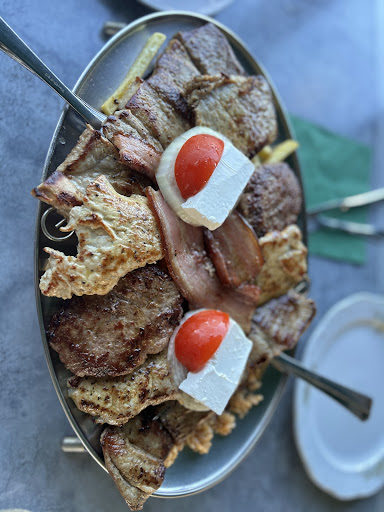 Wir waren 6 Personen , haben 1 Gericht komplett zurück geben lassen weil das Fleisch den Grill nur gesehen hat , es war einfach nicht gebraten 👎👎 Aber dabei konnte man von den 2 Spießen gut die schlechte Qualität sehen ..FETT .. wenig Fleisch .. FETT