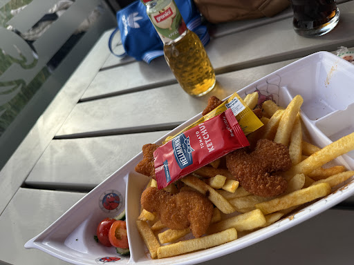 Read moreWaren heute hier essen. Schade die Enttäuschung stand mir über den ganzen Aufenthalt ins Gesicht geschrieben. Erstmal war es klein auf der Karte vermerkt das es sich um ein Restaurant mit Selbstbedienung handelt. Wir hatten die ganze Zeit auf eine Bedienung gewartet bis wir es dann zufällig gelesen haben, weil sich auch schon die Leute neben uns gewundert haben warum man nicht bedient wird obwohl dort genügend Personal vorhanden war. Vom Personal war ich dann auch relativ schnell genervt da die immer in Grüppchen rumstanden und am reden waren und vor allem den Menschen die ihr Essen/Trinken zum Tisch getragen haben immer im Weg standen. Zu zweit dann echt blöd, da man das Trinken und Essen selbst holen muss. Heißt der eine muss dann Laufen da sonst der Tisch weggewesen wäre. Erst trinken, das ging ja noch aber danach dann das Essen. Allein ohne Tablett echt blöd da es einem nur auf dem Tresen hingestellt wird und man dann mehrere Teller alleine weg tragen muss. Das Personal war soweit ganz Nett aber auch teilweise von oben herab und es wurde nur das nötigste gesprochen. Für Leute die das System nicht kennen stehen nur Fragezeichen im Gesicht. Man bekommt einen Tracker in die Hand, weiß dann nicht wohin kommt das Essen oder wird es doch gebracht? Zum Essen selbst: der Backfisch war TK und für den Preis total die Enttäuschung. Der Speck bei den Bratkartoffeln war geschmacklos und war halt einfach nur da. Der Garnelen Teller war zwar sehr reichlich mit Garnelen gefüllt aber eben auch nur ein TK Produkt.