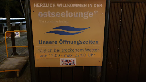 Read moreLediglich einen Stern gibt es heute hauptsächlich für die Öffnungszeiten. Auf der Webseite der Ostseelounge steht, geöffnet bis 22 Uhr !? Am letzten Montag war der Laden voll und bestimmt hätte die Mehrzahl der Gäste weiterhin etwas konsumiert. Aber....um 21.05 Uhr war Feierabend es gab nichts mehr zu bestellen und zu trinken. Der Eingang zur Bar wurde versperrt und die Sitzkissen wurden eingesammelt. Und das am Hotspot in Grömitz wo abends " der Bär steppt "; Lächerlich, unprofessionell und unmöglich ! Das Argument" Personalmangel nutzt ja willkommenerweise jeder und man kann's nicht mehr hören.